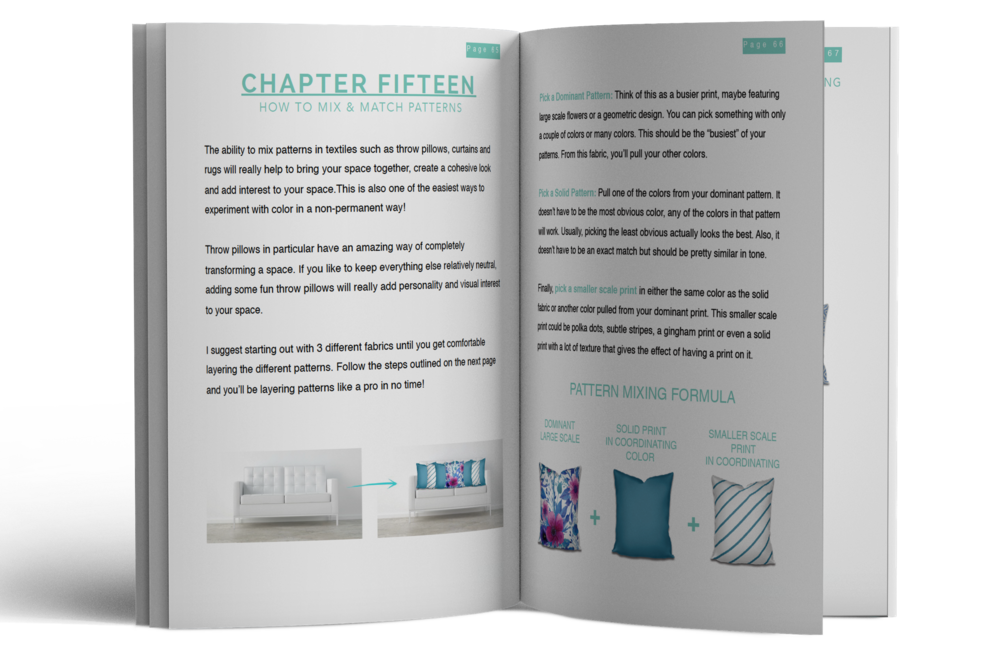 The eBook - 22 chapters (over 80 pages) can be downloaded or printed - It includes real life decorating applications, tips, and fresh ideas to help you overcome your fear of decorating.