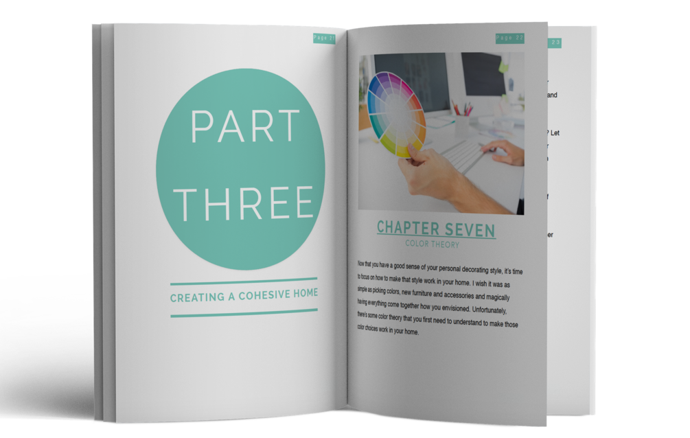 The eBook - 22 chapters (over 80 pages) can be downloaded or printed - It includes real life decorating applications, tips, and fresh ideas to help you overcome your fear of decorating.